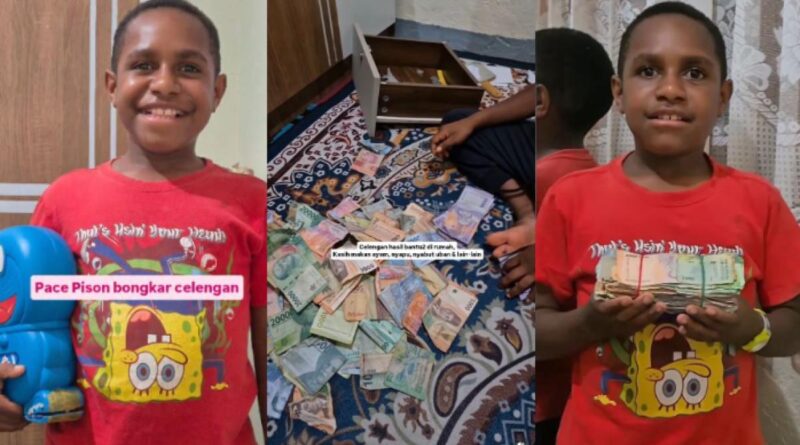 Dalam unggahan video yang viral melalui akun Instagram @merawatpapua, Pison terlihat membongkar celengannya dan menghitung setiap koin serta lembaran uang miliknya.