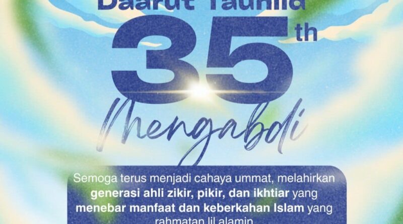 DAARUTTAUHIID.ORG | SDaarut Tauhiid (DT) memasuki usia ke-35 tahun sebagai lembaga dakwah dan pendidikan yang konsisten menebar manfaat bagi umat. Dengan mengusung tema “35 Tahun Mengabdi”, milad kali ini menjadi momentum syukur sekaligus refleksi atas perjalanan panjang Daarut Tauhiid dalam membina jamaah, santri, dan masyarakat luas.