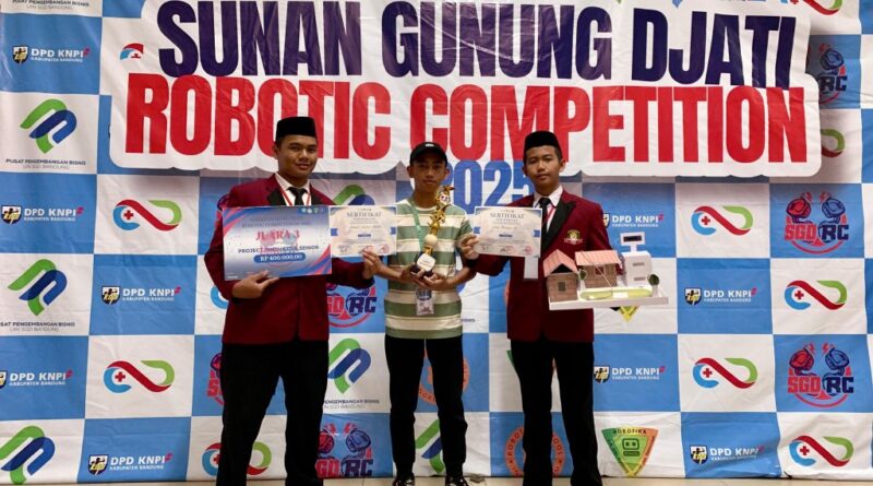 DAARUTTAUHIID.ORG | Prestasi membanggakan kembali diraih oleh santri SMK Daarut Tauhiid. Dalam ajang Lomba Inovasi Bidang Pendidikan yang digelar di UIN Sunan Gunung Djati Bandung, tim Club Robotic dari jurusan Teknik Jaringan Komputer dan Telekomunikasi (TJKT) berhasil meraih Juara 3 berkat karya inovatif mereka yang memadukan teknologi dan semangat literasi.